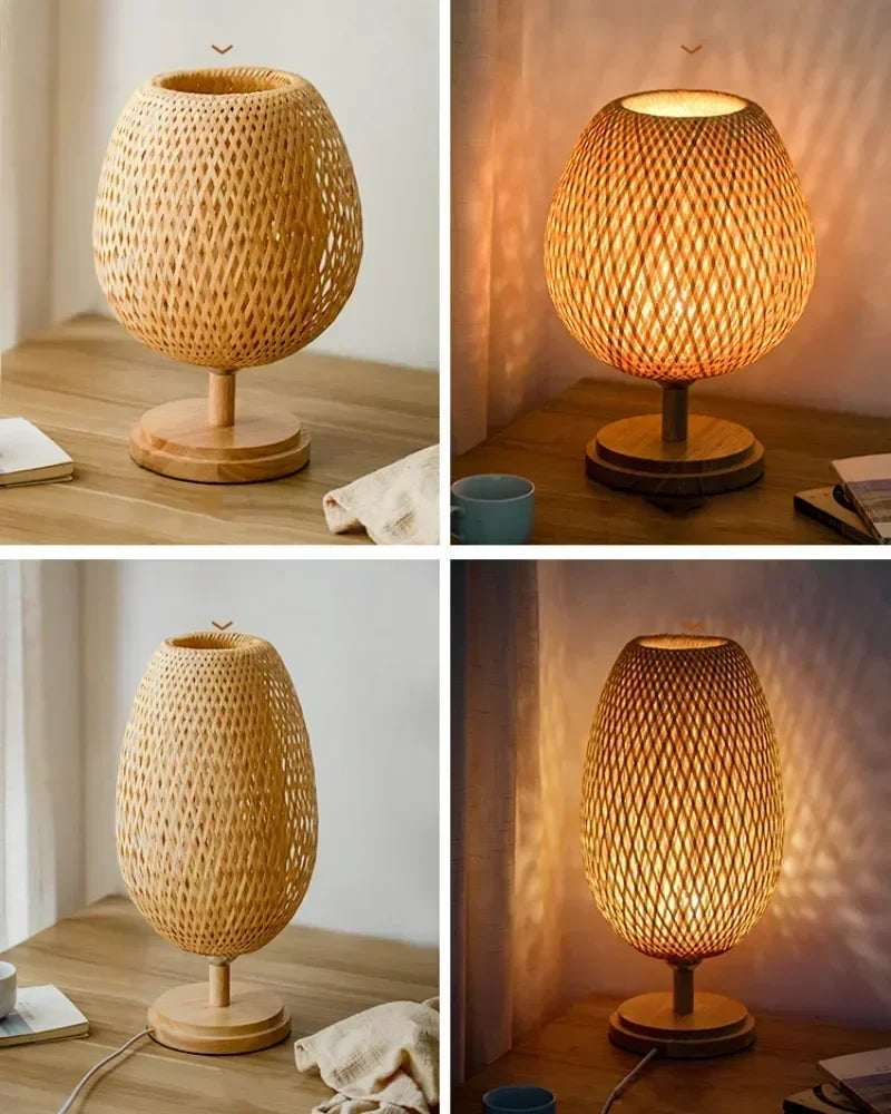 De Bambu - Tafellamp brengt de rust van de natuur rechtstreeks in je interieur. Met de hand gevlochten uit bamboe en rotan, vertelt elke lamp zijn eigen verhaal — een uniek kunstwerk van ambacht en eenvoud.