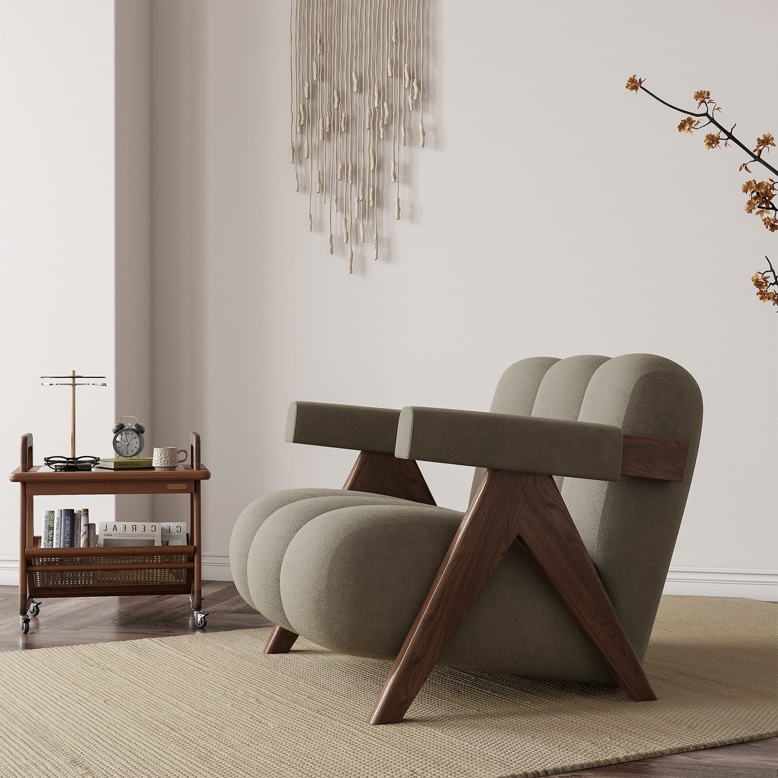 Met zijn ronde, organische vormen en contrasterende houten details, voegt de AURA een vleugje modernisme toe aan elke ruimte. De zachte, hoogwaardige bekleding nodigt uit om te ontspannen, terwijl het solide houten frame kracht en elegantie uitstraalt.