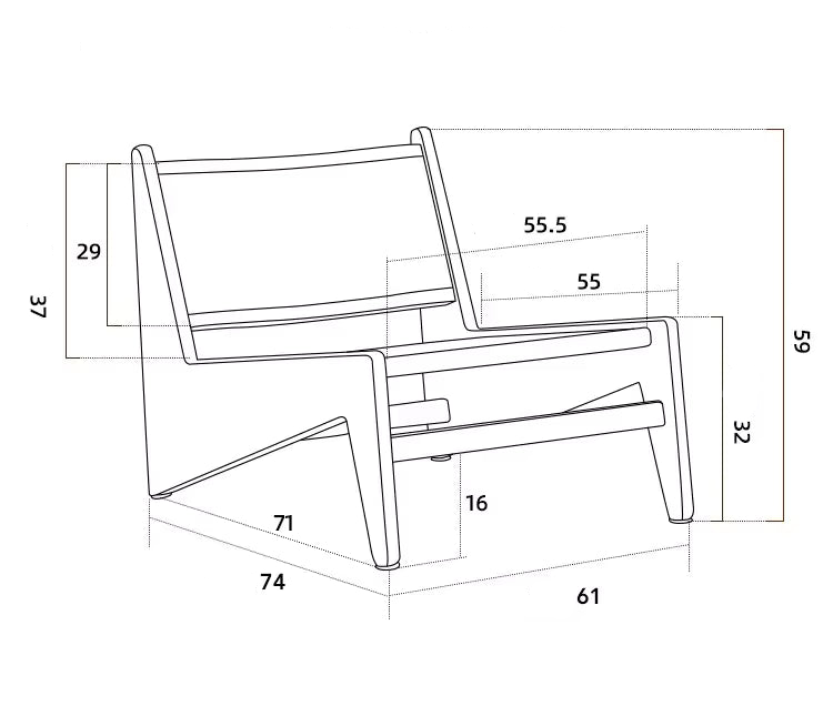 Elke hoek, elke kromming, is ontworpen met aandacht voor rust en ruimte. De zachte helling van de rugleuning nodigt uit tot ongedwongen ontspanning — een plek waar tijd even vertraagt.