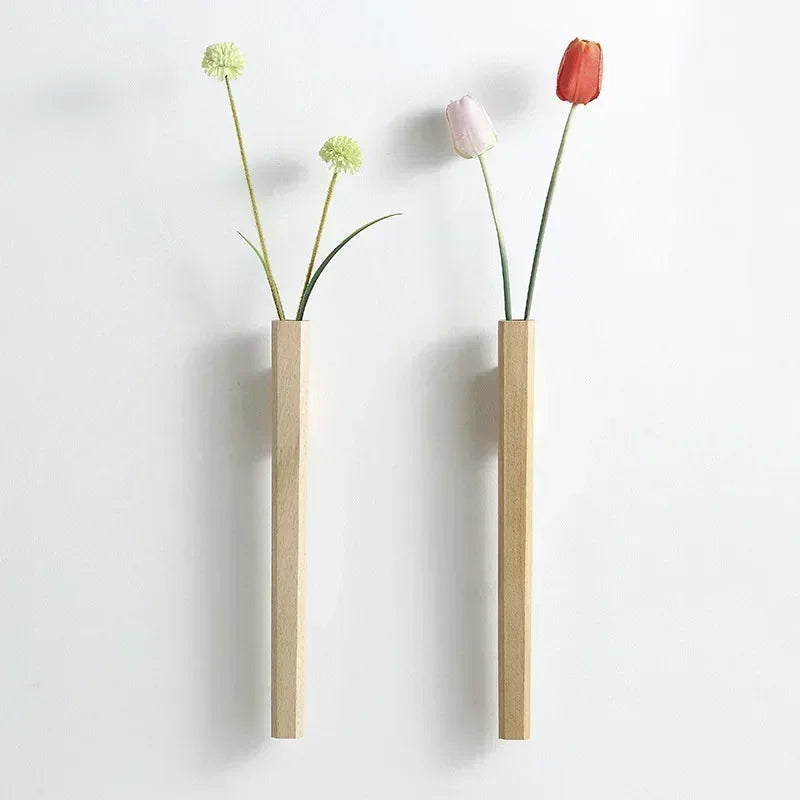 De Vaza brengt natuurlijke warmte en minimalistische stijl samen in een uniek wandontwerp. Gemaakt van massief walnotenhout, voegt deze slanke muurvaas een verfijnde, bohemien touch toe aan elke ruimte.